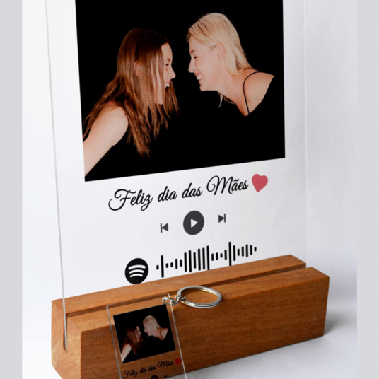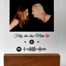 Porta retrato em acrílico com codigo Spotify personalisavél. A foto pode ser sua ou do álbum da música. A foto poderá ser colorida ou transformada em preto e branco se preferir. Impressão Ultra-violeta, não é adesivo. Acrílico 2mm de espessura Tamanho 20x15cm. Base em Madeira 15cm. Não é iluminado.